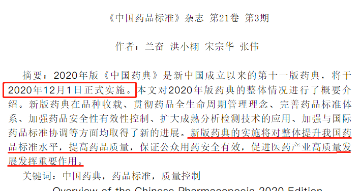 而就在近日,國家藥典委員會正式公布2020年版《中國藥典》將于2020年12月1日正式實施,這也是新中國成立以來的第十一版藥典。