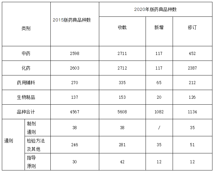 國家藥典委員會公布的內(nèi)容中關(guān)于新增品種/修訂的部分,與以往的藥典改動較大,新增品種319種,修訂3177種,不再收載10種,品種調(diào)整合并4種,共收載品種5911種。