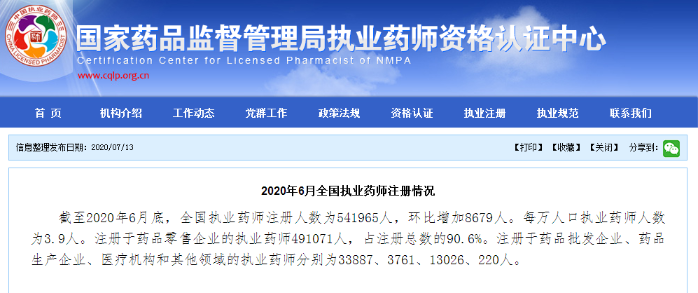 官方數(shù)據(jù):執(zhí)業(yè)藥師注冊人數(shù)6月新增8679人!