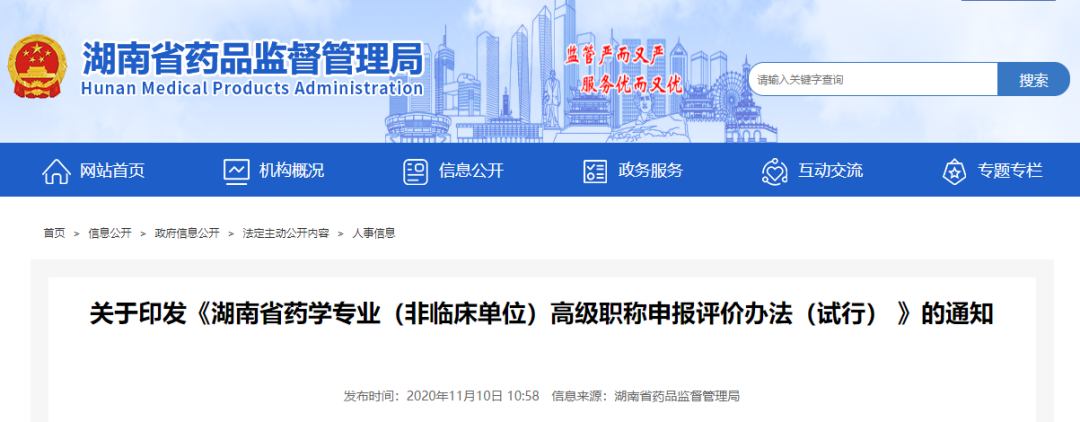 近日,湖南省藥品監(jiān)督管理局發(fā)布了《湖南省藥學專業(yè)(非臨床單位)高級職稱申報評價辦法(試行)》(以下簡稱《辦法》)的通知。