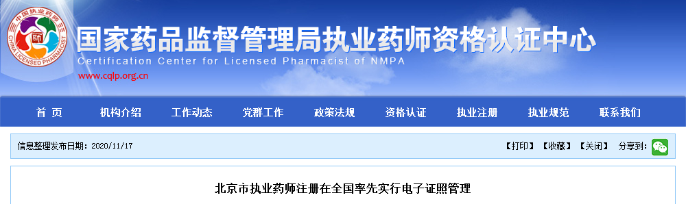 官方發(fā)文,北京市執(zhí)業(yè)藥師注冊在全國率先實行電子證照管理