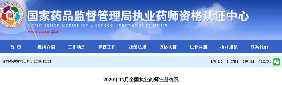 【官方】2020年11月全國(guó)執(zhí)業(yè)藥師注冊(cè)情況公布!