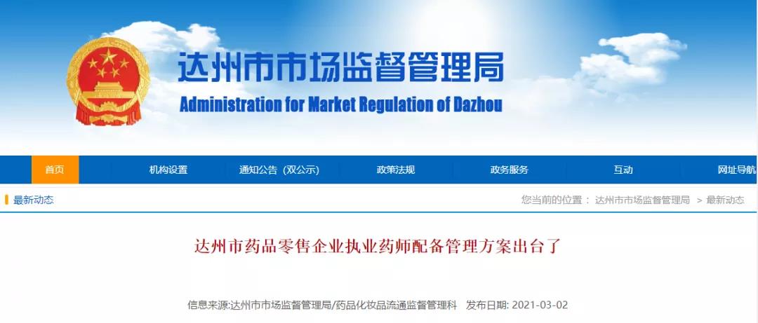 近日,四川達州市市場監(jiān)管局印發(fā)有關(guān)零售企業(yè)執(zhí)業(yè)藥師配備管理方案,值得注意的是,官方強調(diào)部分地區(qū)的藥品零售企業(yè)配備執(zhí)業(yè)藥師的截止日期為2023年12月31日,即將執(zhí)業(yè)藥師配齊的時間整整提前了2年。