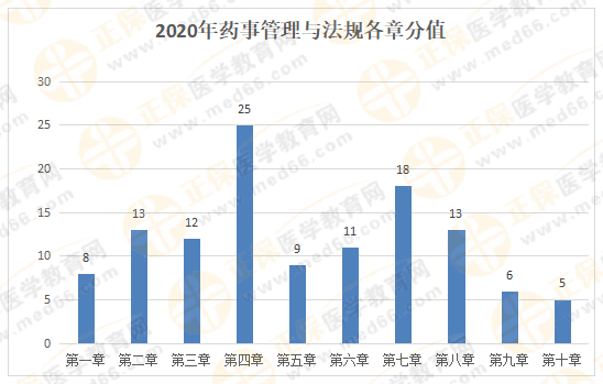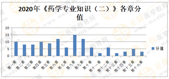 藥二分值來看,分值比較高的第一、二、三、四、五、六、八、九章八個章節(jié),總分值達84分,是拿分的重要章節(jié)。但從圖中也可以感受到,現(xiàn)在各章分值正在平均化,同樣的特點也可以從藥綜、法規(guī)中體現(xiàn)。