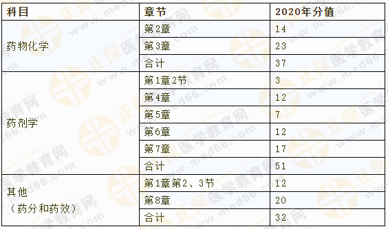 通過表格來直觀看下《藥一》中這三部分(藥物化學、藥劑學和其他)的分值比例情況。