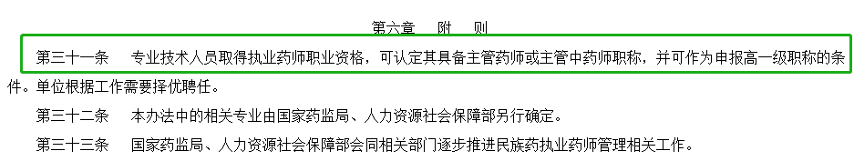 2019年3月20日,國家藥監(jiān)局發(fā)布《人力資源社會(huì)保障部關(guān)于印發(fā)執(zhí)業(yè)藥師職業(yè)資格制度規(guī)定和執(zhí)業(yè)藥師職業(yè)資格考試實(shí)施辦法的通知》,通知提到專業(yè)技術(shù)人員取得執(zhí)業(yè)藥師職業(yè)資格,可認(rèn)定其具備主管藥師或主管中藥師職稱,并可作為申報(bào)高一級職稱的條件,單位可根據(jù)工作需要擇優(yōu)聘任。