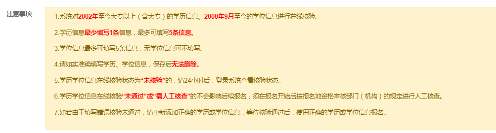 3、報考人員注冊時填寫學歷學位信息需要注意哪些事項?
