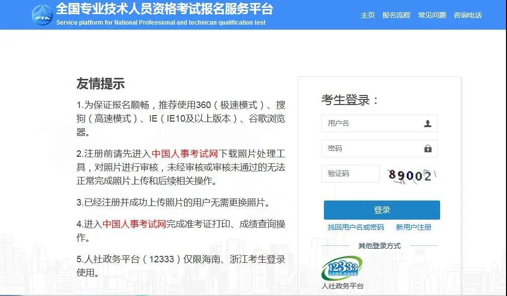 1.打開“全國專業(yè)技術人員資格考試報名服務平臺”,點擊注冊。