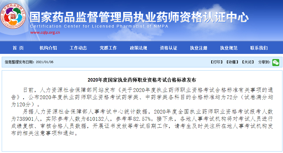 每年國家藥品監(jiān)督管理局執(zhí)業(yè)藥師資格認(rèn)證中心都會公布執(zhí)業(yè)藥師合格標(biāo)準(zhǔn),以及報考人數(shù)、參考人數(shù)和參考率,這些數(shù)據(jù)能夠清楚的讓考生們了解執(zhí)業(yè)藥師考試競爭力!詳情如下!請考生查看!