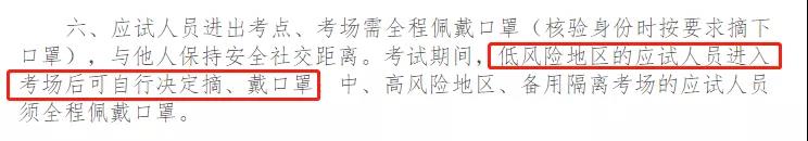 對于口罩的要求,各位考生也要仔細(xì)查看本省的相關(guān)考試要求。不過小編還是覺得,即使沒有硬性規(guī)定,口罩也不敢貿(mào)然摘下來~