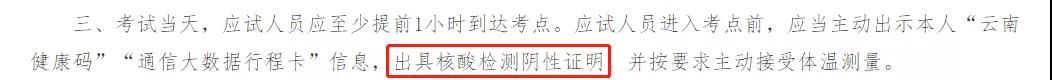 比如云南?。何闯鼍吆怂釞z測陰性證明的應(yīng)試人員,不得進(jìn)入考點。