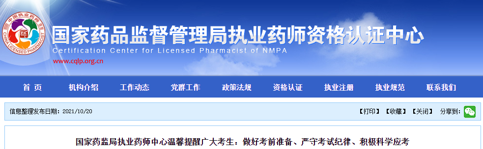 官方發(fā)文:2021執(zhí)業(yè)藥師考生請做好考前準(zhǔn)備、嚴(yán)守考試紀(jì)律、積極科學(xué)應(yīng)考