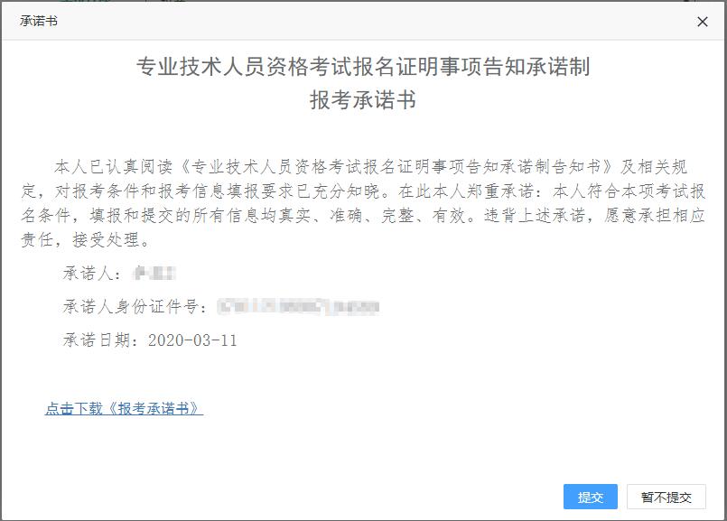 1)若為正常報(bào)名考生,點(diǎn)擊【保存】,彈出簽訂報(bào)考承諾書頁(yè)面: