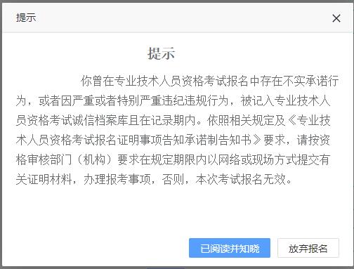 選擇報(bào)名省份,點(diǎn)擊【下一步】,顯示【專業(yè)技術(shù)人員資格考試報(bào)名證明事項(xiàng)告知承諾制告知書】,如圖。閱讀完畢后,選中【我已閱知并同意】,點(diǎn)擊【下一步】,可進(jìn)入報(bào)考須知。若考生不想報(bào)名,點(diǎn)擊【放棄報(bào)名】,退出該考試報(bào)名。