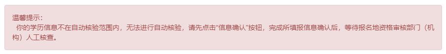 若注冊(cè)信息中的身份、學(xué)歷、學(xué)位還未通過(guò)核查,將彈出相應(yīng)的提示信息,完成核查后方可繼續(xù)報(bào)名。
