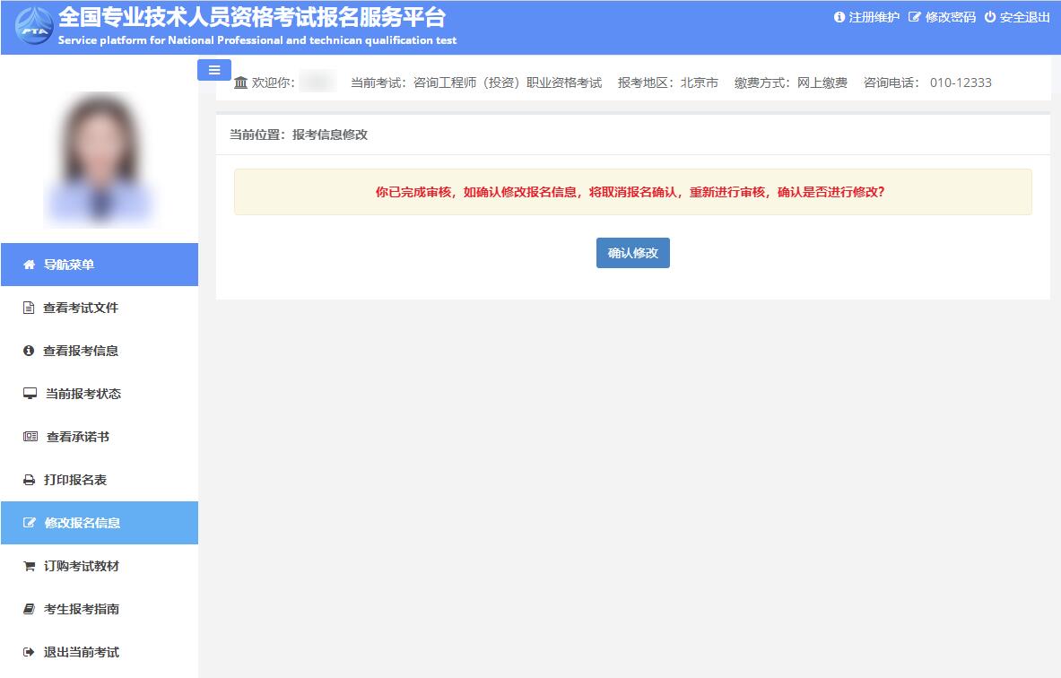 考生在報(bào)名地考試機(jī)構(gòu)設(shè)置的時(shí)間節(jié)點(diǎn)之前都可以取消核查及確認(rèn)進(jìn)行信息修改操作:考生點(diǎn)擊左側(cè)菜單【修改報(bào)考信息】進(jìn)入取消報(bào)名確認(rèn)界面,點(diǎn)擊【是】按鈕可以取消你的核查狀態(tài)及確認(rèn)狀態(tài),進(jìn)行報(bào)名信息修改操作。