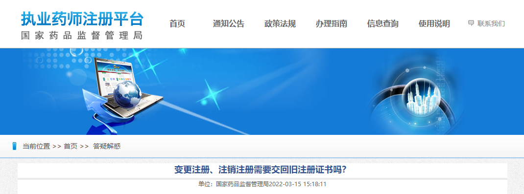 變更注冊、注銷注冊執(zhí)業(yè)藥師證書需要交回舊注冊證書嗎?