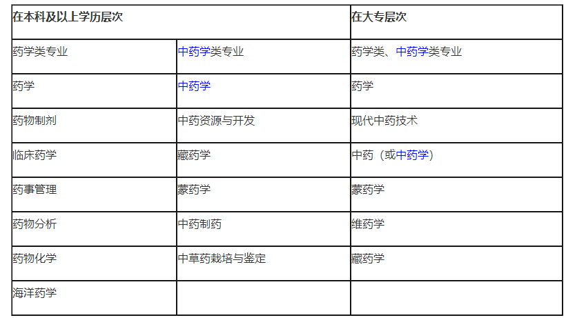 報(bào)考條件中要求的“藥學(xué)類(lèi)、中藥學(xué)類(lèi)專(zhuān)業(yè)”,按照國(guó)務(wù)院學(xué)位委員會(huì)、教育部印發(fā)的《學(xué)位授予和人才培養(yǎng)學(xué)科目錄設(shè)置與管理辦法》《普通高等學(xué)校高等職業(yè)教育(專(zhuān)科)專(zhuān)業(yè)設(shè)置管理辦法》和《學(xué)位授予和人才培養(yǎng)學(xué)科目錄》《普通高等學(xué)校本科專(zhuān)業(yè)目錄(2012年)》《普通高等學(xué)校高等職業(yè)教育(專(zhuān)科)專(zhuān)業(yè)目錄(2015年)》等規(guī)定,對(duì)照學(xué)科目錄來(lái)界定。