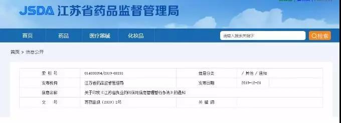 為了規(guī)范執(zhí)業(yè)藥師執(zhí)業(yè)行為,12月26日,江蘇藥品監(jiān)督管理局制定《江蘇省執(zhí)業(yè)藥師信用信息管理暫行辦法》通知(以下簡稱《辦法》)。