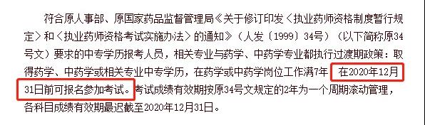 2019年8月份發(fā)布的《執(zhí)業(yè)藥師職業(yè)資格考試》文件中提到,中專學歷的考生可以在2020年12月31日前報名參加考試。