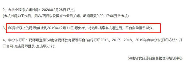 除此之外,還有1個小消息值得我們關(guān)注:60周歲以上的藥師(截止到2019年12月31日)可免考,待培訓(xùn)檔案審核通過后,平臺自動授予學(xué)分(點擊查看詳情>>)。