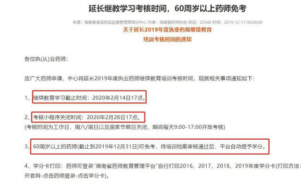 為了讓這部分歸零處理的執(zhí)業(yè)藥師學(xué)員可以及時補上2019年繼續(xù)教育的學(xué)分,湖南省藥師協(xié)會也延長繼教學(xué)習(xí)考核時間。