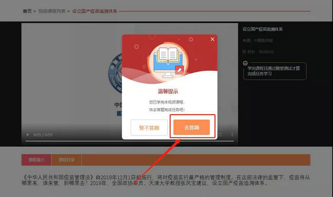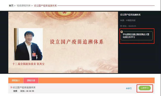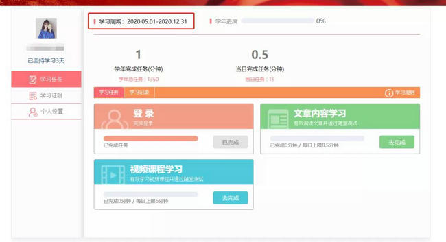 (1)點擊【視頻課程學習】,選擇其中1個視頻進行學習,學完要通過隨堂測試才算是完成了任務(wù)學習;