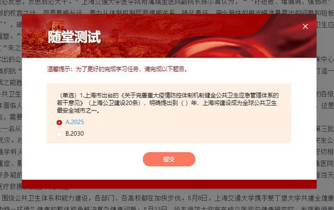 注意:只有看完文章,結(jié)束了規(guī)定的閱讀時長,隨堂測試才會出現(xiàn)。
