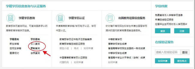 (2)首頁左邊的零散查詢:進入登陸頁面,輸入學歷證書編號、姓名、圖片驗證碼即可免費查詢。(一般是用人單位或者需要驗證學歷信息的部門最常用的方法。)