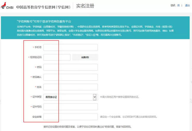 第二步:按要求真實填寫身份信息,完成注冊。