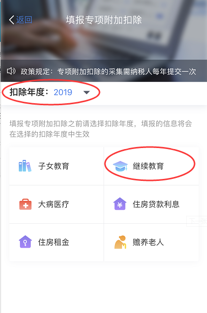 3、選擇扣除年度、繼續(xù)教育