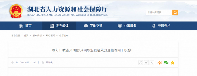 近期,湖北省發(fā)布了《明確34項(xiàng)職業(yè)資格效力直接等同于職稱》這則信息。