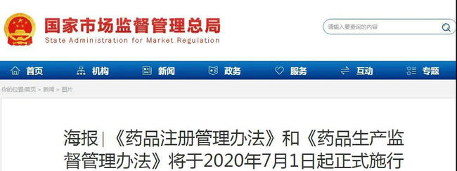 《藥品注冊管理辦法》和《藥品生產(chǎn)監(jiān)督管理辦法》將于2020年7月1日起正式施行。