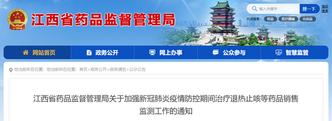 9月18日,江西省藥品監(jiān)督管理局發(fā)布了《江西省藥品監(jiān)督管理局關(guān)于加強(qiáng)新冠肺炎疫情防控期間治療退熱止咳等藥品銷售監(jiān)測(cè)工作的通知》(以下稱《通知》)。