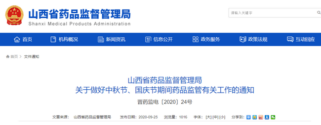 9月25日,山西省藥監(jiān)局發(fā)布了《關(guān)于做好中秋節(jié)、國(guó)慶節(jié)期間藥品監(jiān)管有關(guān)工作的通知》(以下簡(jiǎn)稱“通知”)。