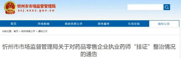 自從國(guó)家加大對(duì)執(zhí)業(yè)藥師“掛證”現(xiàn)象的打擊力度,就經(jīng)常聽(tīng)到“掛證”被查的消息,最近又有忻州市市場(chǎng)監(jiān)督管理局發(fā)布通告,對(duì)本市的22名“掛證”執(zhí)業(yè)藥師進(jìn)行查處和公示,具體如下: