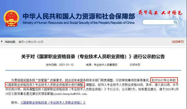 今年1月12日,人社部發(fā)布了最新版《國家職業(yè)資格目錄(專業(yè)技術(shù)人員職業(yè)資格)》,相較于2017版,移除了1項(xiàng)專業(yè)技術(shù)人員職業(yè)資格,減少了5項(xiàng)準(zhǔn)入類證書。