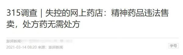 在今年315晚會(huì)開播之前,就有媒體曝光了網(wǎng)上藥店的一大問題,即精神藥品違法售賣,出售處方藥也無需藥方。