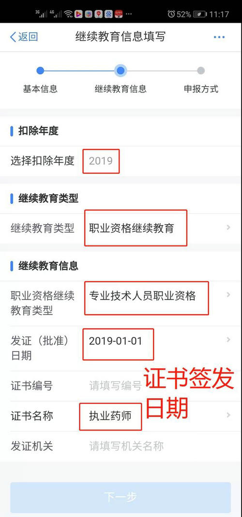 依照要求進(jìn)行挑選填寫(xiě)(繼續(xù)教育類型挑選“職業(yè)資歷繼續(xù)教育”,繼續(xù)教育信息挑選“專業(yè)技能人員職業(yè)資格”,證書(shū)稱號(hào)挑選為“執(zhí)業(yè)藥師”);然后點(diǎn)擊下一步即可完成申報(bào)了。