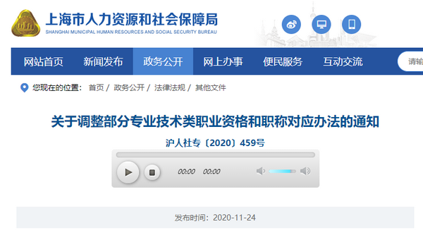 2020年11月24日,上海人力資源和社會保障局調(diào)整了《關于部分專業(yè)技術類職業(yè)資格和職稱對應辦法的通知》。