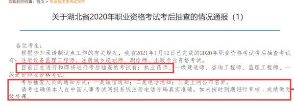 湖北省之前是執(zhí)行執(zhí)業(yè)藥師考前審核的省份,但是2020年執(zhí)業(yè)藥師考試后,官網(wǎng)又發(fā)布了考后抽查社保的通知,之后又發(fā)布了公告,寫明考后抽查的具體要求并公布名單。
