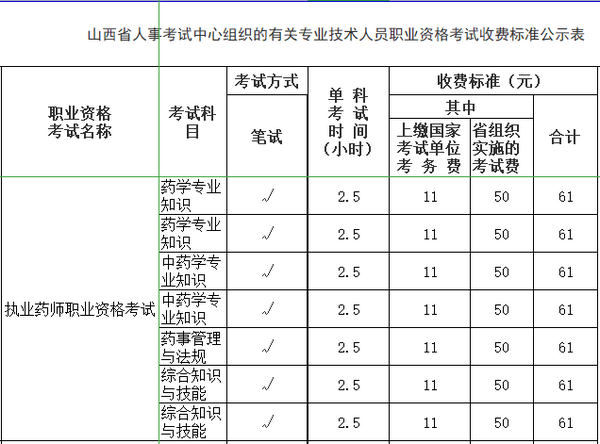 山西人事考試網(wǎng)發(fā)布了《關(guān)于公示山西省人事考試中心組織的有關(guān)專業(yè)技術(shù)人員職業(yè)資格考試收費標(biāo)準(zhǔn)的公告》,2021年執(zhí)業(yè)藥師考試報名費用為61元/每科。