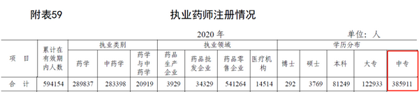 近期國家藥監(jiān)局也公布了2020年執(zhí)業(yè)藥師的最新數(shù)據(jù)報告,其中在關(guān)于目前全國執(zhí)業(yè)藥師的注冊情況中提到,中專學(xué)歷的執(zhí)業(yè)藥師就有38萬多,占總?cè)藬?shù)的一半不止。也就是說往年執(zhí)業(yè)藥師考試中,中專考生也是占了很大比例的。