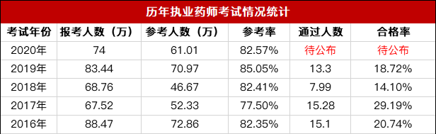 藥考通過人數(shù)近3年來沒有突破過20%,2020年執(zhí)業(yè)藥師通過率還未公布;