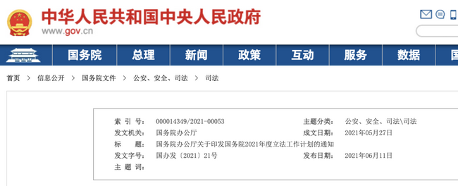 6月11日,國務(wù)院辦公廳發(fā)布《國務(wù)院辦公廳關(guān)于印發(fā)國務(wù)院2021年度立法工作計劃的通知》,計劃中提到2021年藥師法草案預(yù)備提請全國人大常委會審議。
