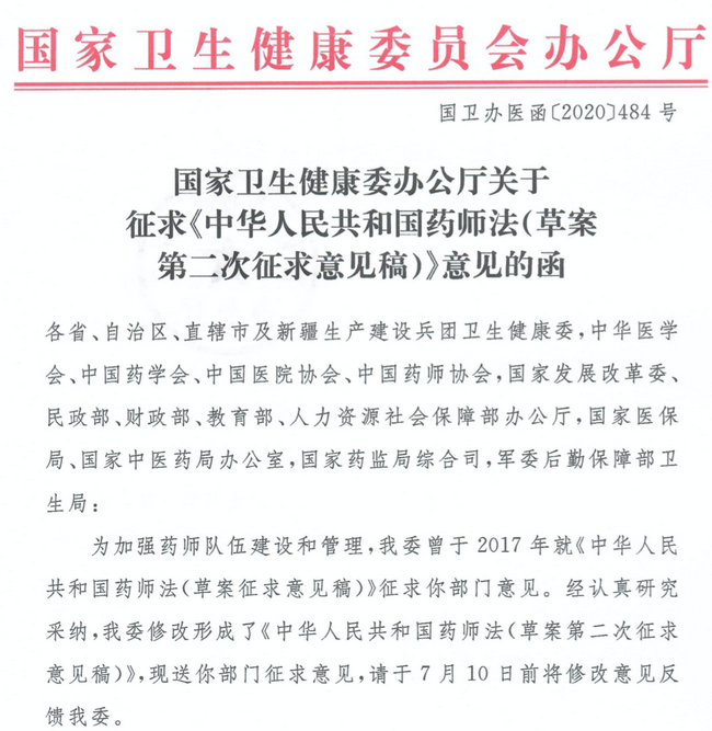 2020年6月17日《藥師法》第二次征求意見稿草案發(fā)布。