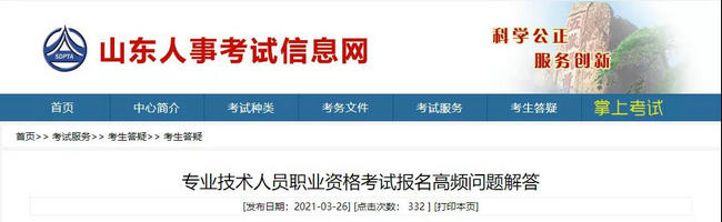 山東省人事考試中心對2021年專業(yè)技術(shù)人員職業(yè)資格考試報(bào)名的一些高頻問題作出解答!