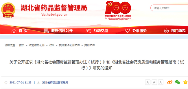 近日,湖北省藥品監(jiān)督管理局起草的《湖北省社會(huì)藥房監(jiān)督管理辦法(試行)》(下稱《辦法》)和《湖北省社會(huì)藥房質(zhì)量和服務(wù)管理指南(試行)》(下稱《指南》)發(fā)布,向社會(huì)公開征求意見。