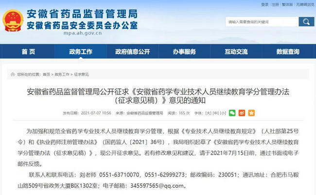 根據最新版《執(zhí)業(yè)藥師注冊管理辦法》及有關規(guī)定,安徽省藥監(jiān)局局近日組織起草了《安徽省藥學專業(yè)技術人員繼續(xù)教育學分管理辦法(征求意見稿)》(以下簡稱《意見稿》),并公開征求意見。