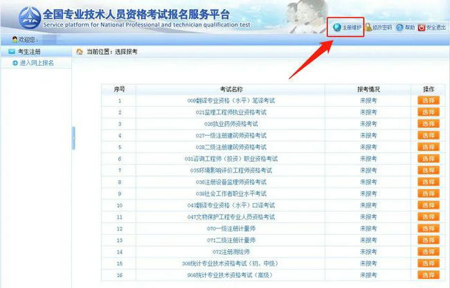 大家可以在保存學(xué)歷信息后的第二天,重新登錄帳號(hào),點(diǎn)擊“注冊(cè)維護(hù)”;